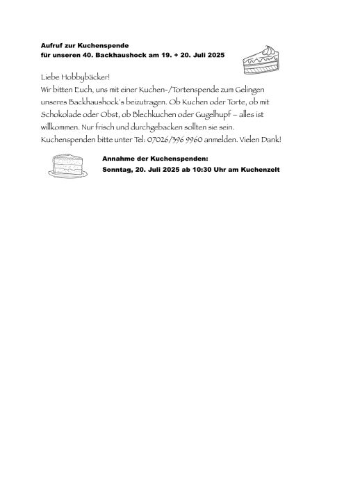 Es ist wieder soweit, der Backhaushock findet am 19. + 20. Juli, zum 42. mal statt.