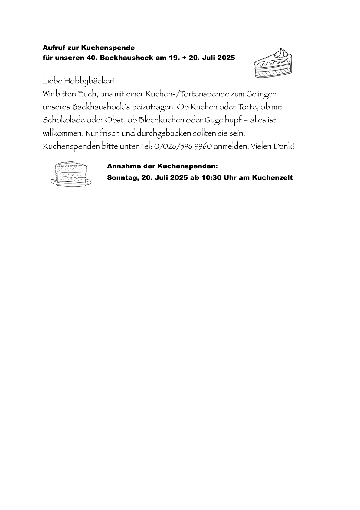 Es ist wieder soweit, der Backhaushock findet am 19. + 20. Juli, zum 42. mal statt.